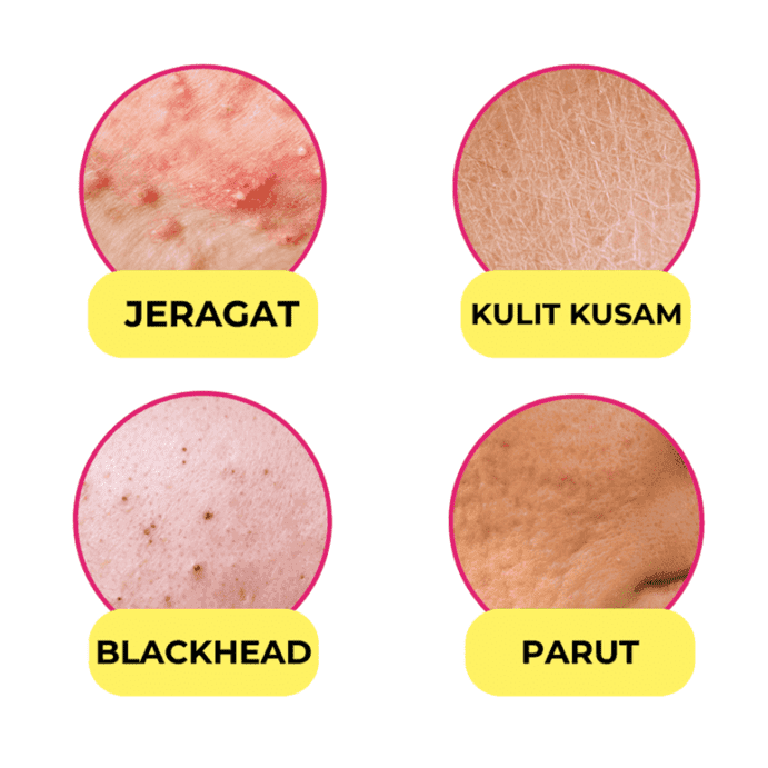 Masalah kulit bermula dari lapisan Epidermis & Dermis menyebabkan pelbagai masalah kulit seperti jerawat, jeragat, kulit kusam, dan bintik hitam.